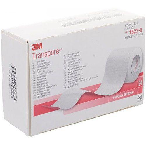 3M 1527-0 Transpore Surgical Tape 1.25 cm x 9.1 m - (24/Box)