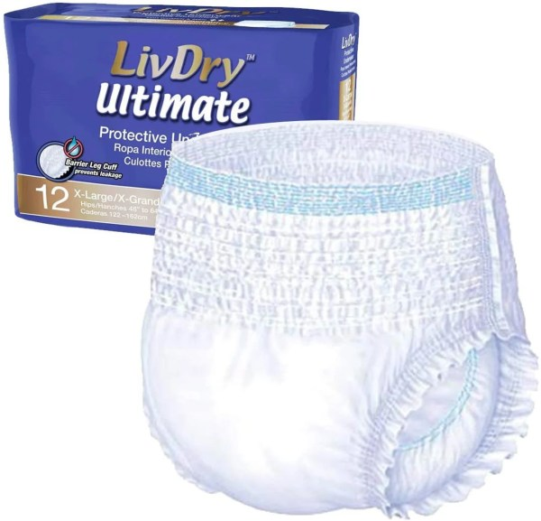 Do Home Healthcare LivDry Ultimate Protective Underwear has been developed to be as protective and discreet as possible. It provides a comfortable fit with maximum protection against leaks and the highest absorbency available on the Canada Market, while still maintaining a low-profile cross-section that is almost unnoticeable under most clothing.