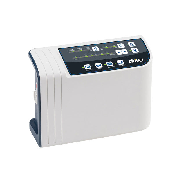 The Med Aire Edge is a dual mode system with Alternating Pressure Therapy with the added safety feature of a 3” wide transfer edge. This helps enable safe and easy transfers on and off the surface, and also reduces falls and entrapment. Alternating modes assist in wound healing and prevention and there are four operating cycles (5/10/15/20 min) based on therapy requirements. The Med Aire Edge also has a Constant Low Pressure (static) option, as well as a max inflate and seat inflation for the Fowler position. A 3” foam layer is also built into the base of the surface to prevent clients from bottoming out. The mattress cover is treated with an antimicrobial to guard against degradation from microorganisms on the cover. The durable cover also tolerates cleaning with disinfectants, refer to user manual for suggested disinfectants.