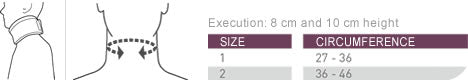 DETERMINING SIZE / FITTING The neck brace is available in 2 circumferences and 2 heights.